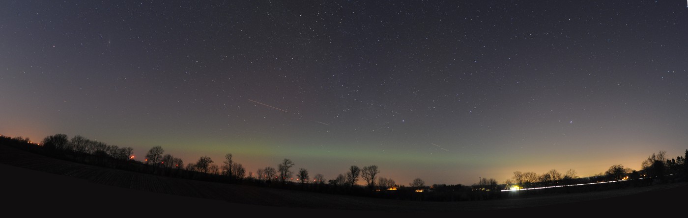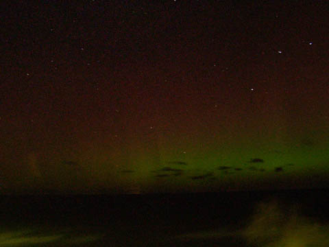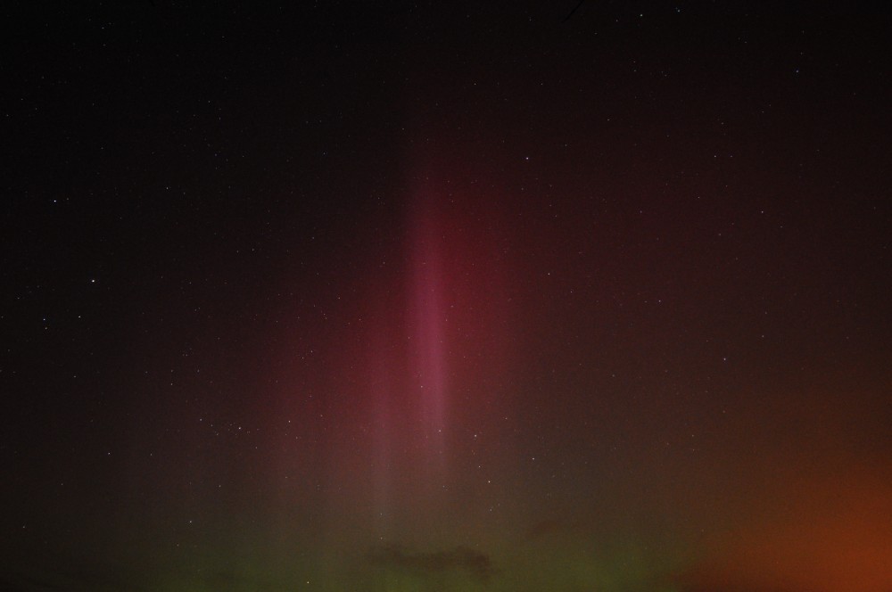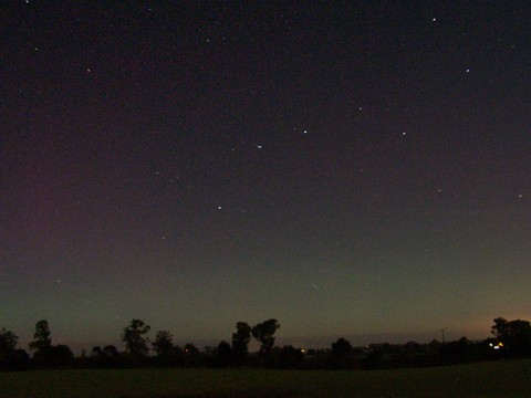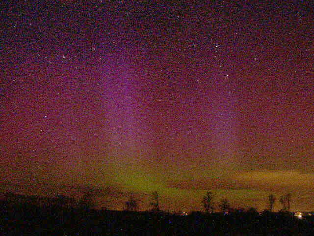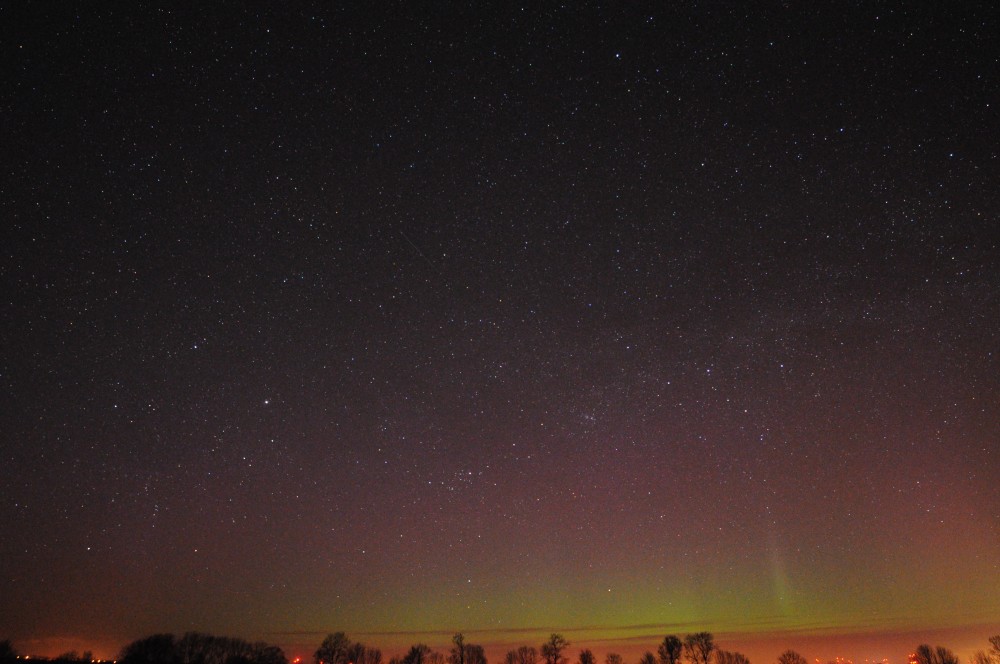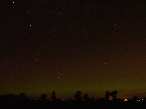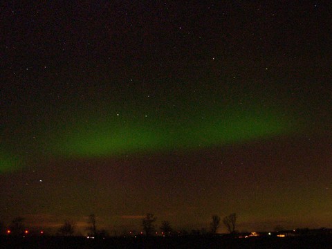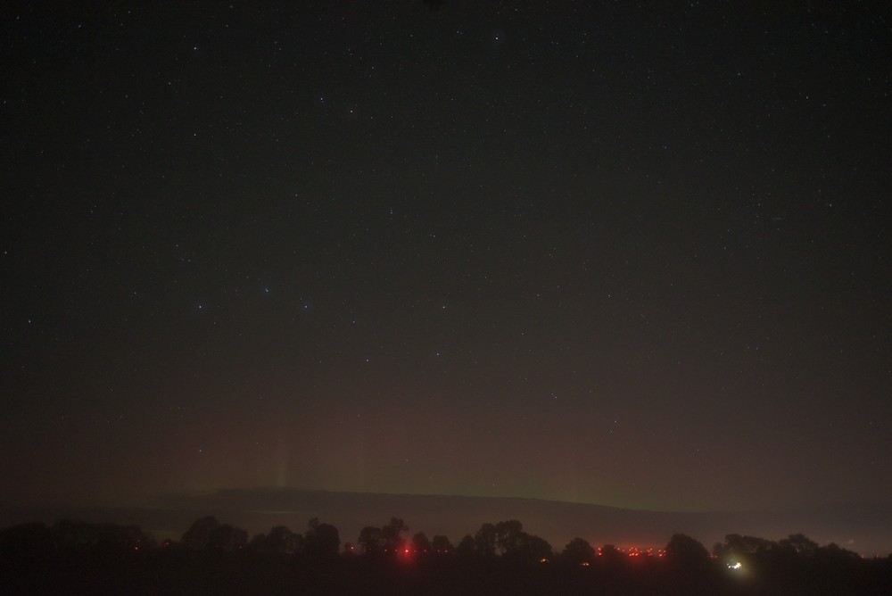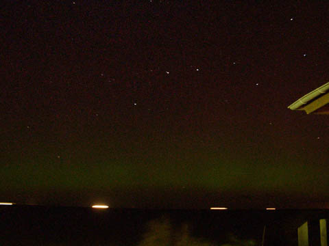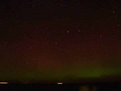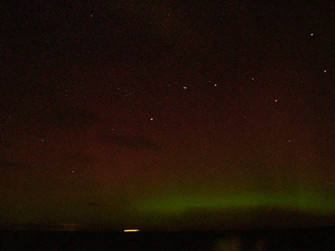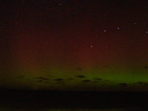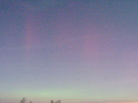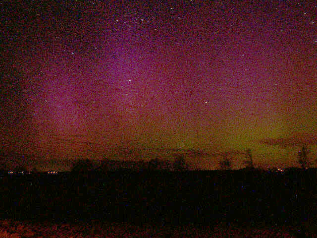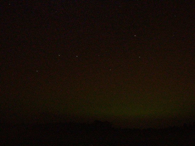 Kommentar:Insgesamt war es(für unsere Verhältnisse) ein eher starkes aber langweiliges PL, diffuser grünlicher Bogen genau im N mit ca. 15°(später bis zu 25° Erhöhung), sehr selten waren Beamer