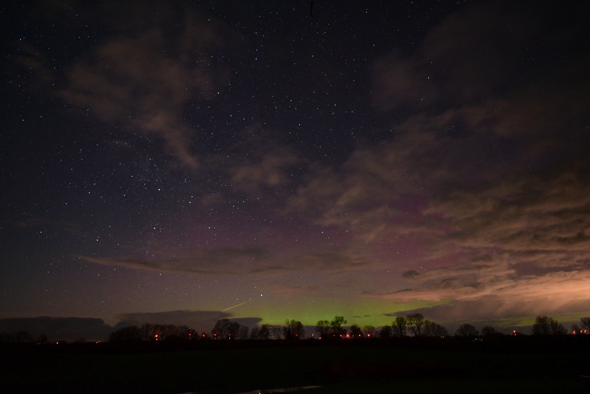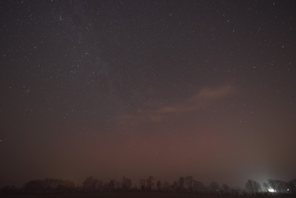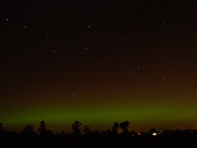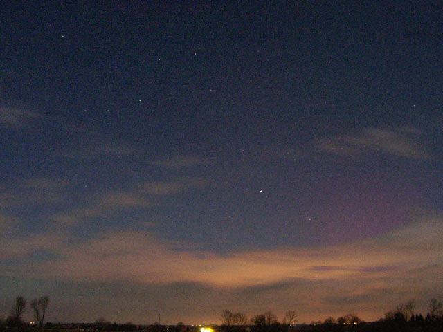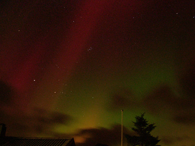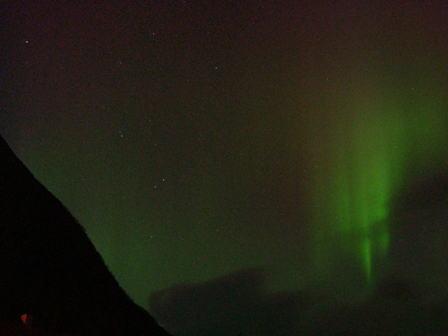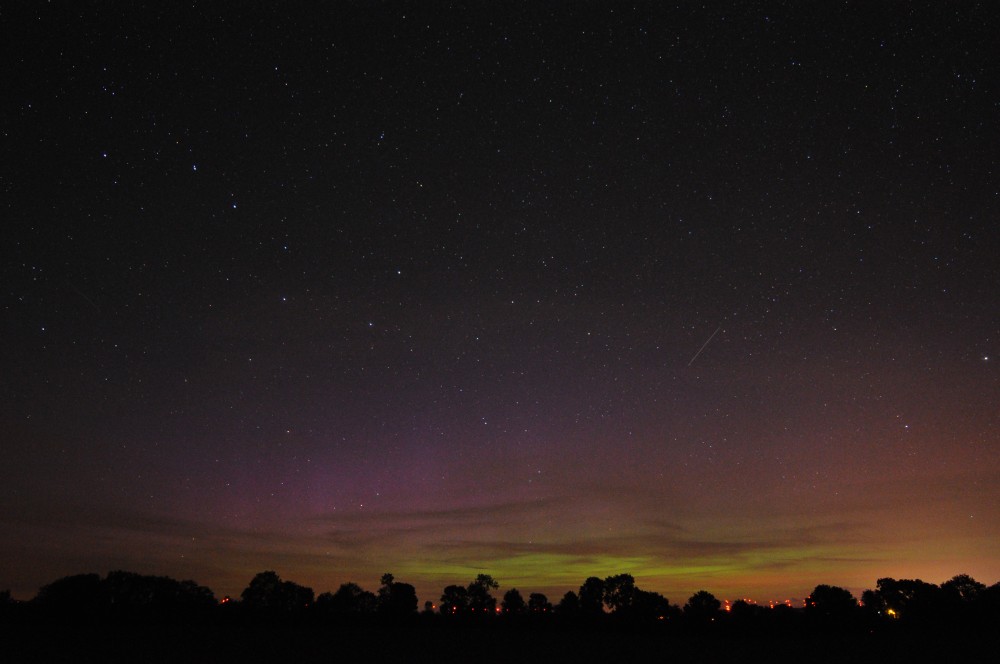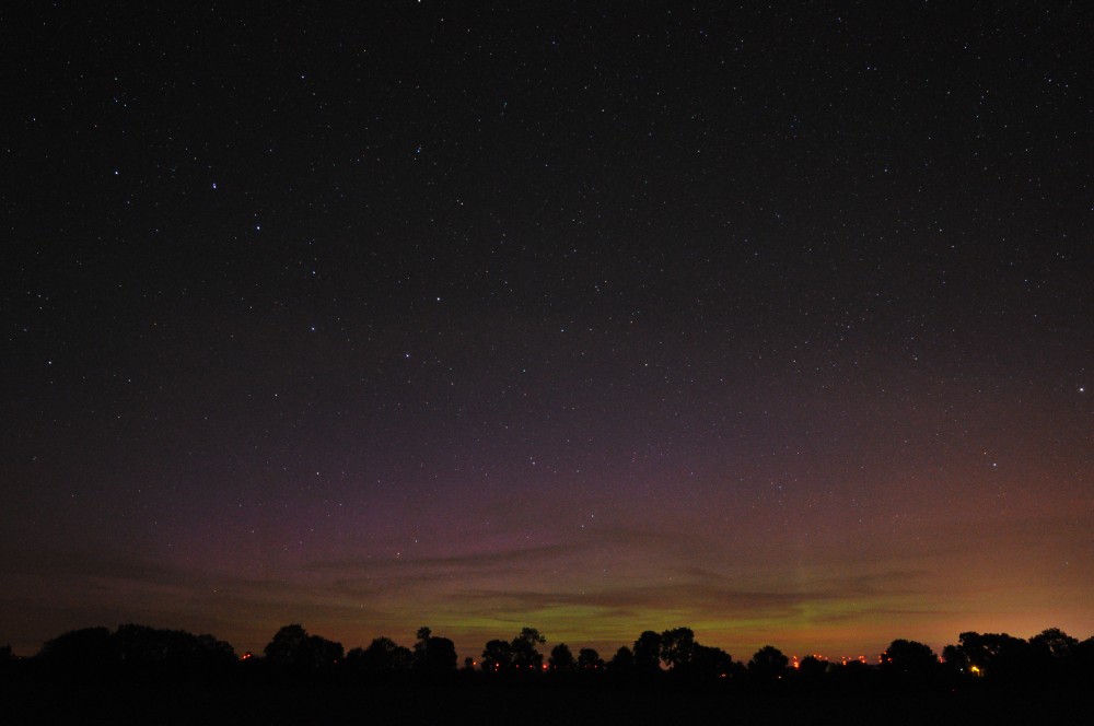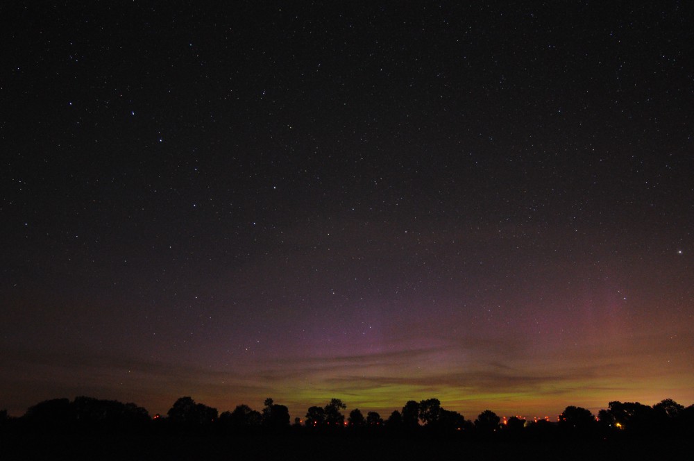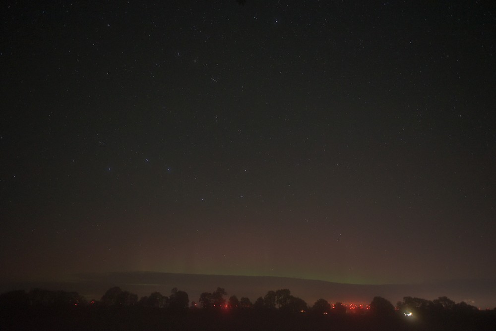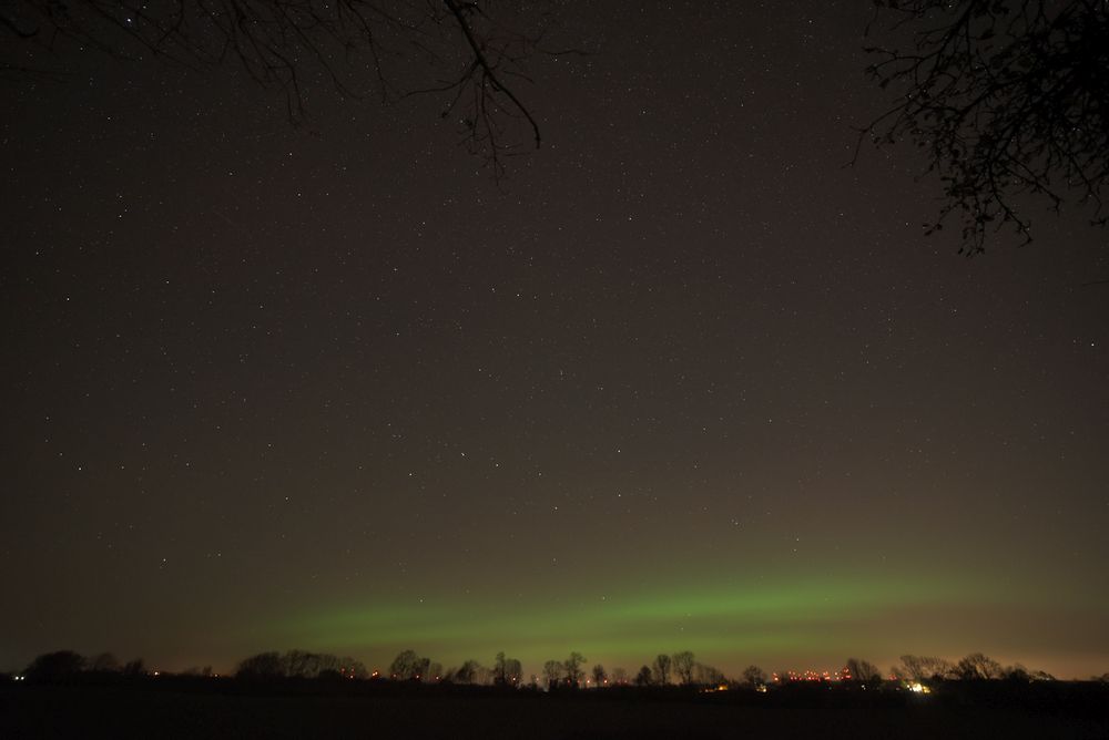 Kommentar:Insgesamt war es(für unsere Verhältnisse) ein eher starkes aber langweiliges PL, diffuser grünlicher Bogen genau im N mit ca. 15°(später bis zu 25° Erhöhung), sehr selten waren Beamer