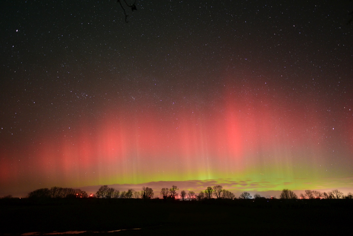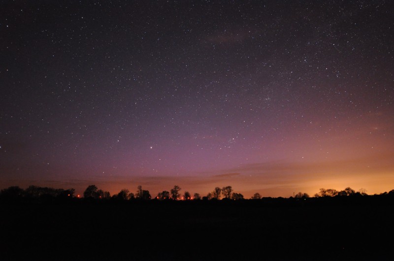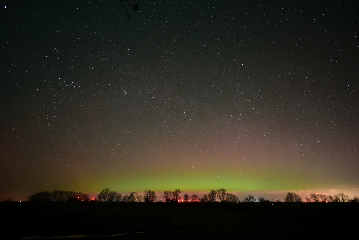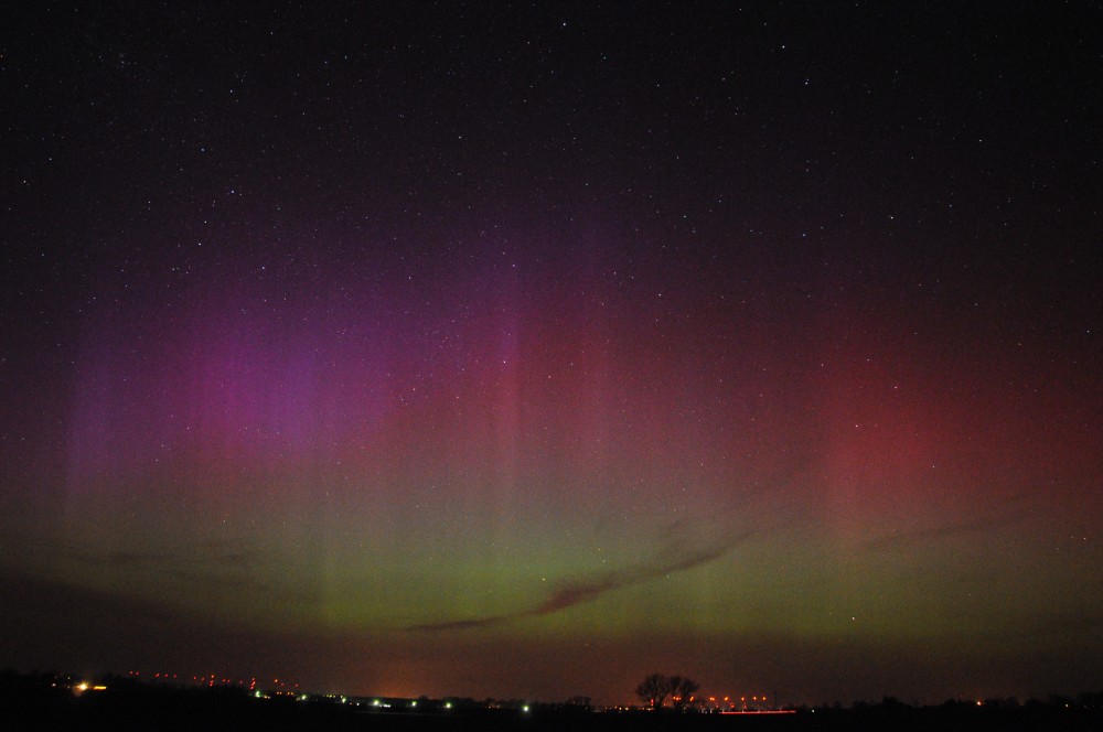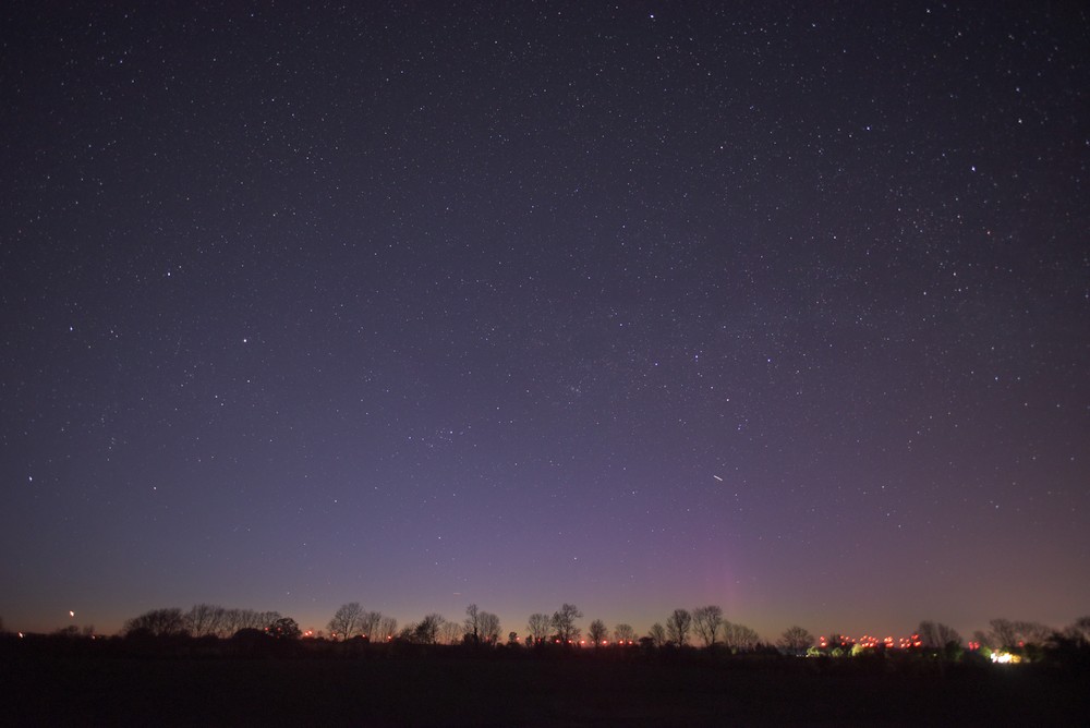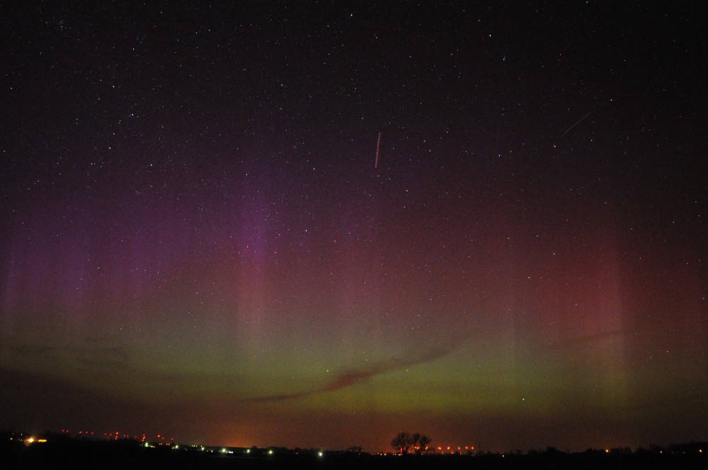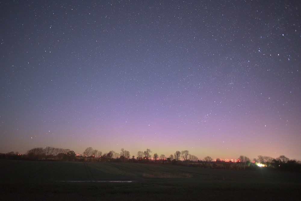 Kommentar:Insgesamt war es(für unsere Verhältnisse) ein eher starkes aber langweiliges PL, diffuser grünlicher Bogen genau im N mit ca. 15°(später bis zu 25° Erhöhung), sehr selten waren Beamer